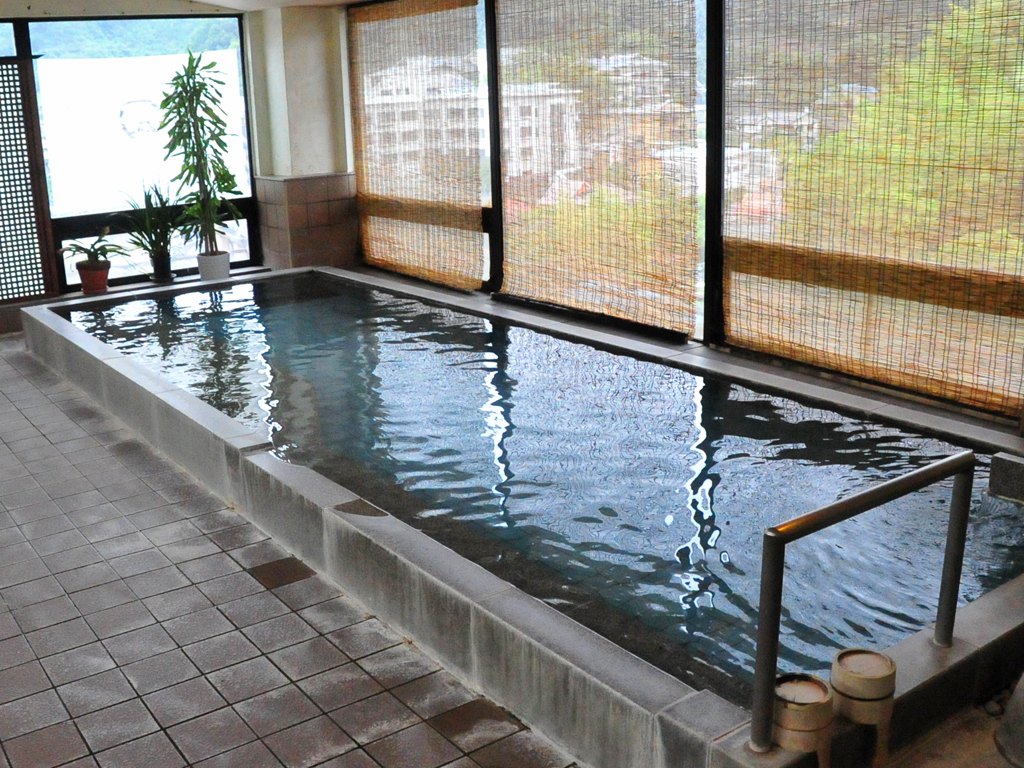 当館階上の大浴場は源氏山を目の前に、四季折々の自然と一体になれる幽玄閑雅な名湯です。 この湯は長寿・出世の湯といわれ、恵み豊かなお風呂として愛されています。 とうとうと湧く長岡の温泉を、こころゆくまでお楽しみください。