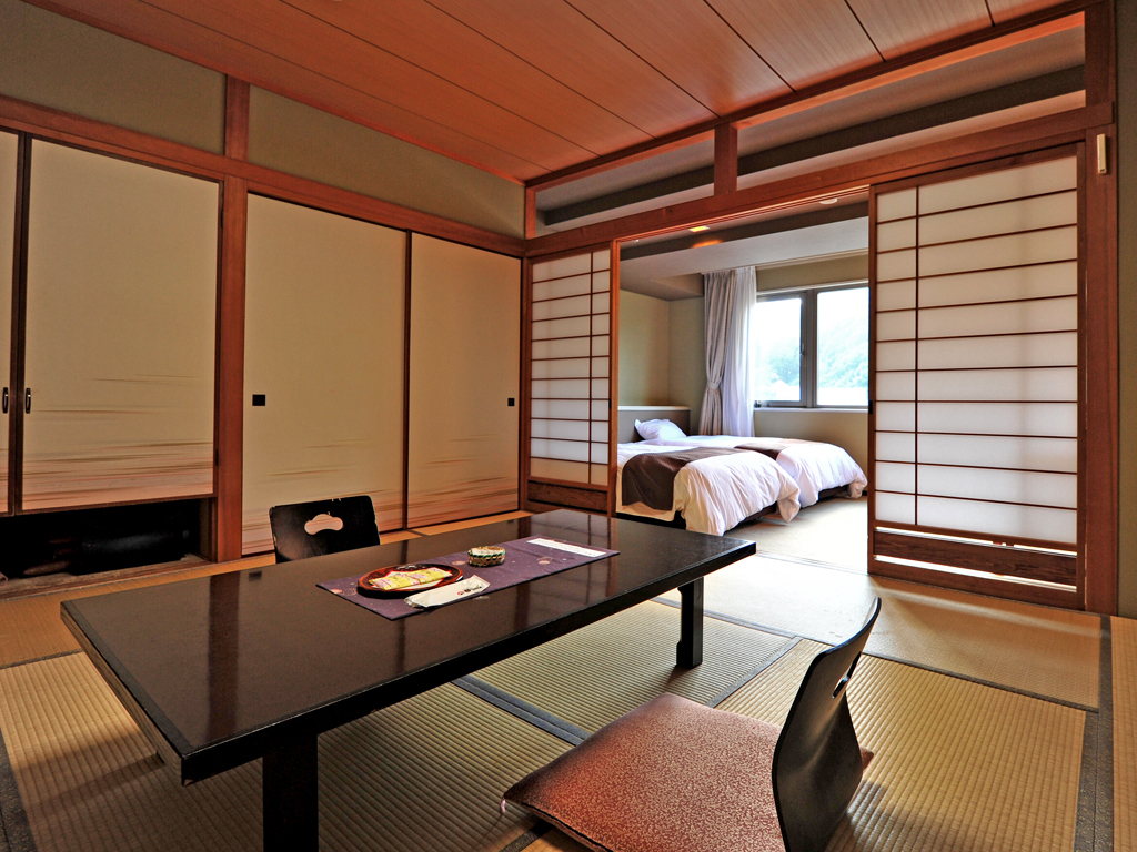 讃水の館と、贅沢な飛天の館とあり、和室洋室、または露天風呂付き客室とタイプも取り揃えております。
