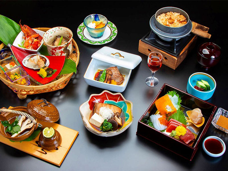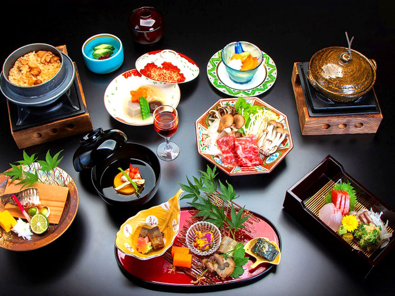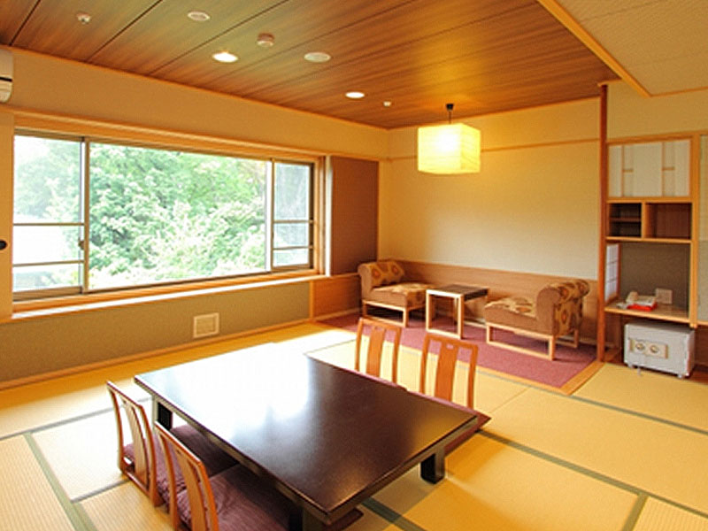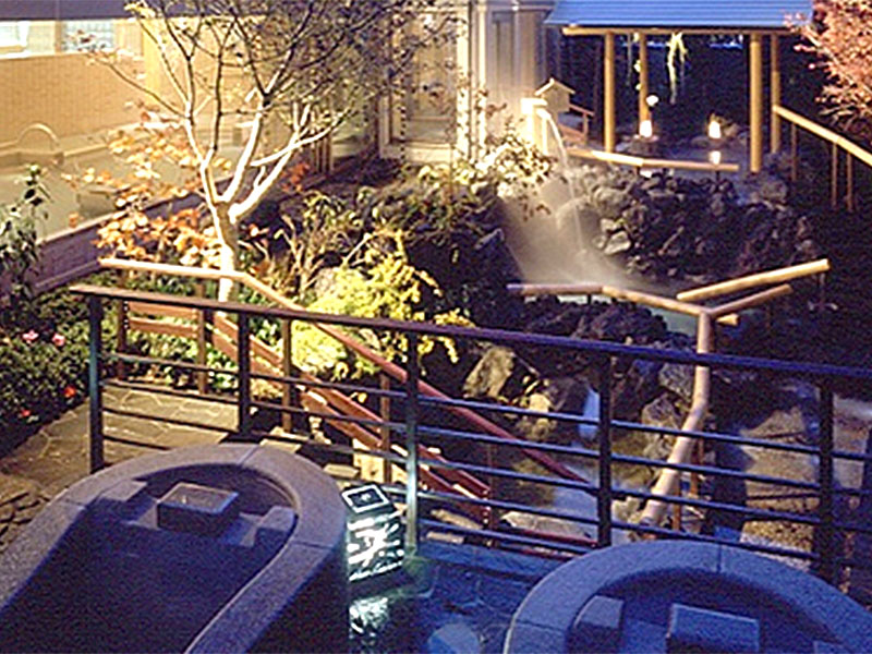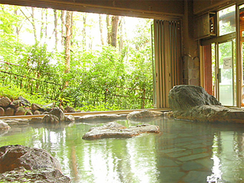 大岩風呂の「しろがねの湯」・「打たせの湯」と、露天風呂の「こがねの湯」、サウナ、水風呂がございます。ご夕食は、個室料亭での「本格懐石」、ダイニングルームでの「蒸し料理会席」、古民家風食事処での「網焼き料理会席」、食座“旬の坊”での「地産地消バイキング」など、それぞれの調理長が上州の旬の素材をふんだんに使って演出します。当館は地産地消優良店に認定されています。