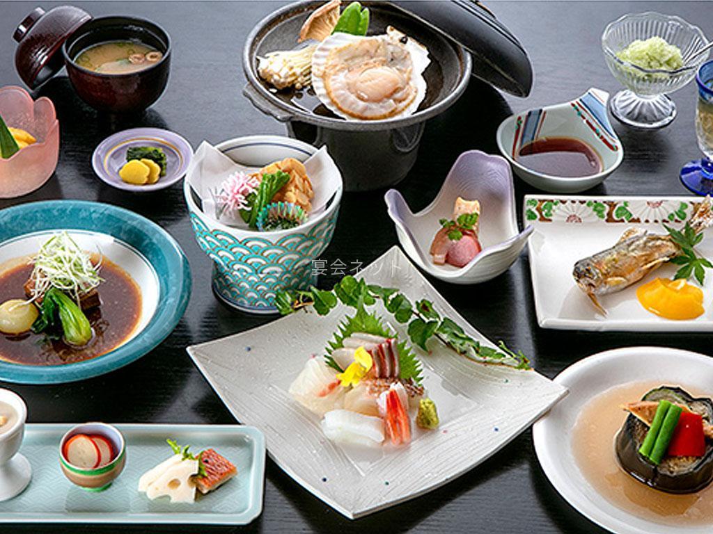 大浴場と露天風呂、ヒノキ風呂、洞窟風呂の4つの風呂でお楽しみ下さい。殿上人や武将たちが歓喜の声をあげたという本陣の膳。素材と器を吟味した本格風懐石創作料理、本陣の味を宴会場食堂でどうぞご堪能ください。