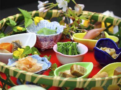 そして夜には、秩父ならではの里山の恵みが宴会のお食事として並びます。奥秩父の山に育まれた山菜を始め直営農場の無農薬野菜など、美味しさあふれる旬の里山素材を厳選いたしました。さらには産地直送の海の幸も盛り合わせた、贅沢な秩父会席をどうぞお召し上がりください。