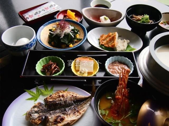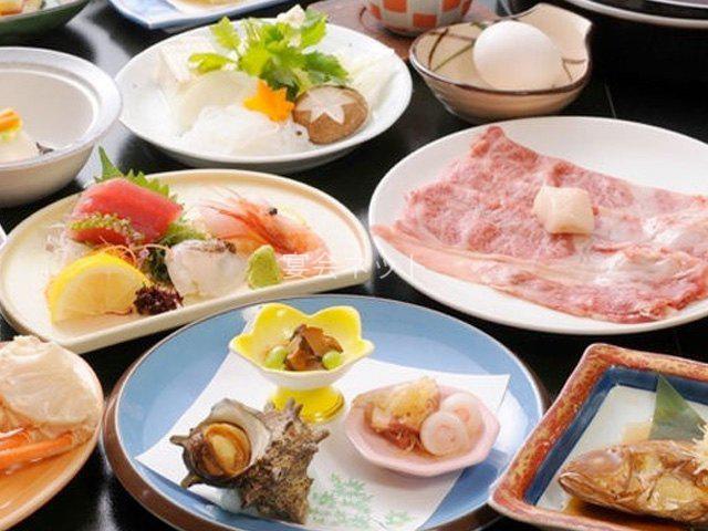 お食事は、伊勢海老、鮑をはじめとする海の幸や、高級黒毛和牛のステーキなど、たっぷりと味わいながら、愉しく美味しいひとときをお過ごしください。
