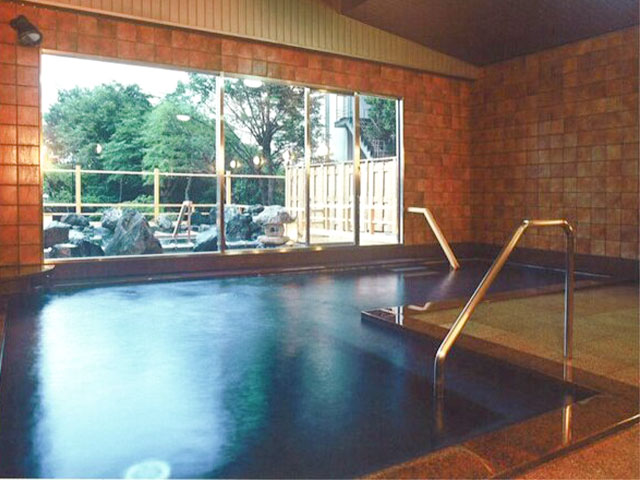 まずは野趣あふれる露天付き大浴場にて、日頃の疲れを癒してください。清々しさあふれる木や岩で作られた魅力あふれる湯船でございます。