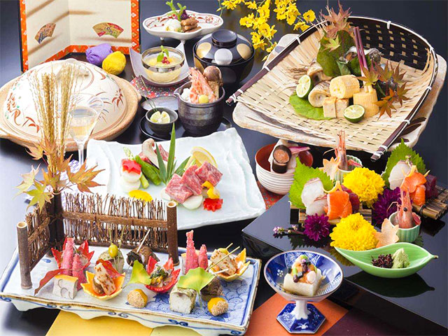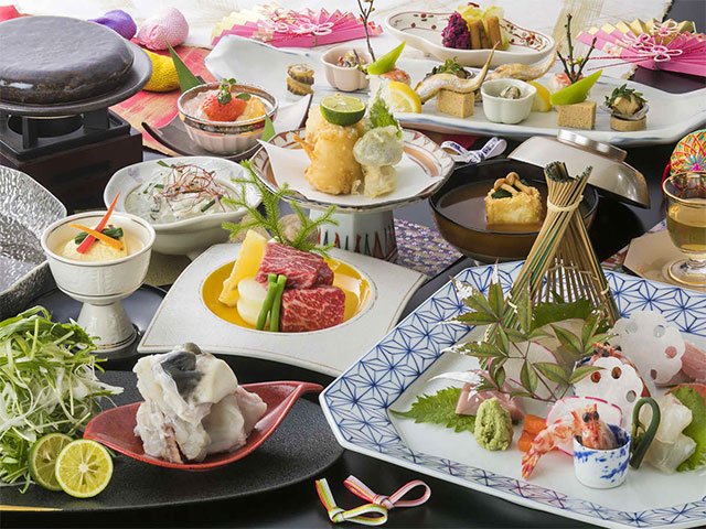 そして夜には季節の山海の恵みをご堪能いただきます。旬の素材をふんだんに盛り込まれたお料理は、その季節の中でも最も美味しい厳選食材をのみを使用しています。滋賀の名産近江牛などをはじめ、この地の味わいをどうぞご堪能ください。