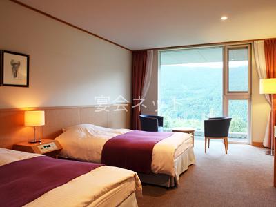 館内のほとんどの場所から緑を望む事ができる癒しの宿
