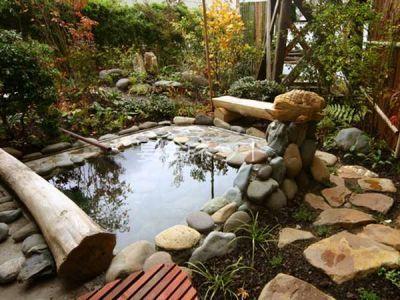 お客様を温かく笑顔で迎えてくれるのは、シアトル出身の若旦那。その青い目の若旦那が手作業で作った源泉かけ流しの露天風呂は、自然の石や流木が使われて風情たっぷり。中庭にあるので四季折々の自然を眺めながら、日頃の疲れを癒すことができます。