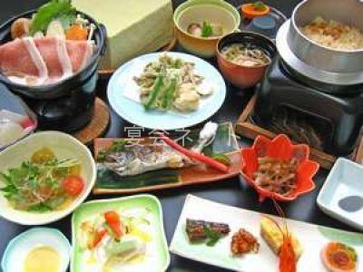 食事にもこだわっており、大歩危ならではの旬の食材を活かした料理を是非お召し上がりください。渓谷ならではの山と川の味覚をふんだんに揃えています。季節の移り変わりとともに献立も変えていきますので、その瞬間にもっとも美味しいものをもっとも美味しい形でお召し上がりいただけるはずです。