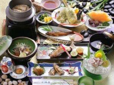 ご宴会の際のお食事では、市場直送の新鮮な魚を丹精こめて調理した、味の芸術品をご賞味ください。近くで取れた旬菜を一番美味しくいただけるよう、創意工夫をしてお出ししています。ぜひとも、四季の彩りをご賞味ください。