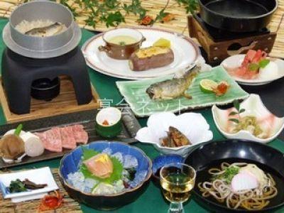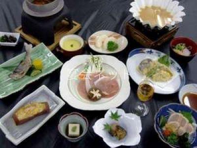 お料理は地元素材を活かし季節のお野菜や川魚を丹精込めて料理しています。川魚は夏は鮎、冬はあめごをメインにご用意いたします。ご入浴の後には、自慢の料理でごゆっくりとおくつろぎ下さい。