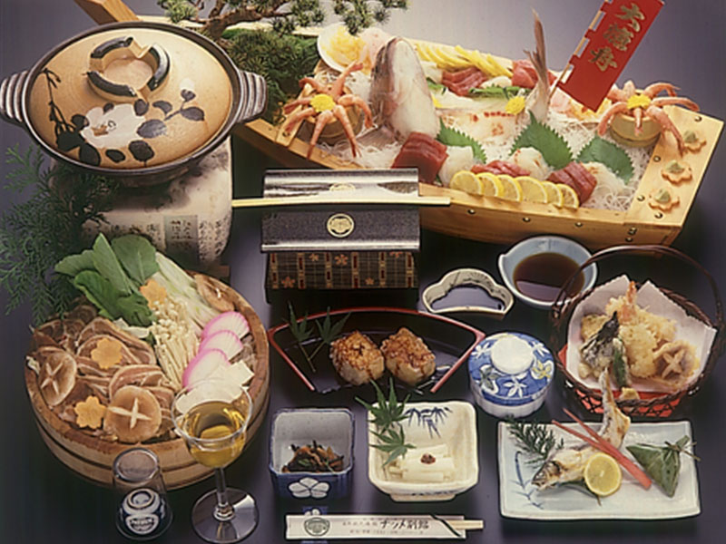 お夕食では、山の天然水と新鮮な旬の食材たちをふんだんに使用したお料理が並びます。大自然が育んだ天然の味を心ゆくまでご堪能下さい。