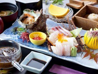 呼子でしか味わえないイカの活造り。新鮮で透き通った身に、ほどよい甘みとコリコリとした食感は一度食すると忘れられなくなります。お食事では、そのイカの活造りや地元の旬の味覚をご堪能いただける会席料理をぜひお召し上がりください。