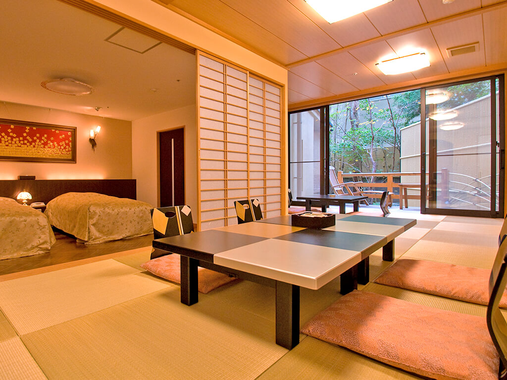 「露天のゆ 金閣」は、しつらいのひとつひとつに、さりげない加賀の趣を配した純和風旅館です。懐かしい日本のこころを感じながらおくつろぎください。